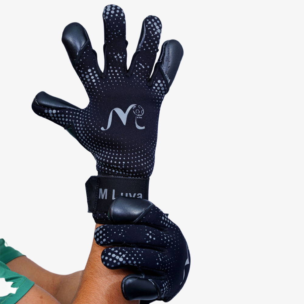 The Mluva Black Star combines pro-grade design with advanced materials for unmatched performance. Featuring a German Contact Latex Palm and anti-slip strips for superior grip, it ensures maximum control in every play. Its neoprene backhand and 3D silicone gel printing deliver durability and flexibility, while the adjustable elastic strap guarantees a secure fit. Built for athletes who demand precision, comfort, and unstoppable confidence on the field.